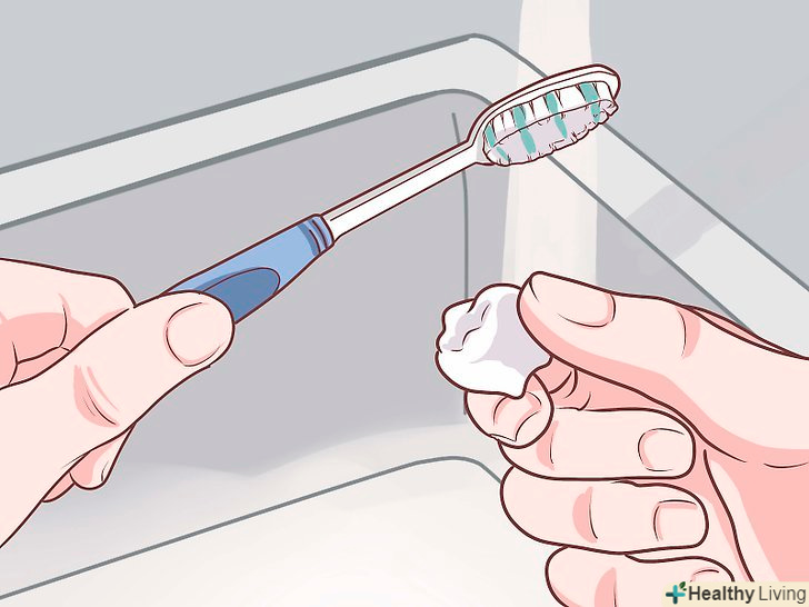 Почистіть коронку. [11] по можливості ретельно зчистіть з коронки залишки старого цементу, їжі або інших речовин, використовуючи зубну щітку, зубочистку або зубну нитку, а потім промийте її водою.- Очищаючи коронку і зуб над раковиною, обов'язково спершу закупорьте зливний отвір, щоб не впустити її випадково в каналізацію.