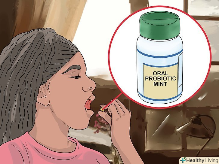 З'їжте м'ятну цукерку з пробіотиком.Замініть звичайну м'ятну цукерку м'ятною цукеркою з пробіотиком. Пробіотики містять живі мікроорганізми, які зазвичай використовуються для надання позитивного ефекту на шлунок людини, але дослідження показують, що м'ятні цукерки з пробіотиками також вбивають бактерії, що викликають неприємний запах з рота.[17] ці цукерки невеликі, їх зручно носити і вони є простою заміною звичайним м'ятним цукеркам.