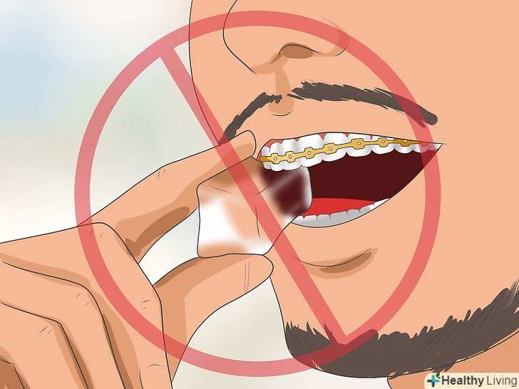 Не жуйте кубики льоду.вони можуть нашкодити брекетам і зубам.[21]