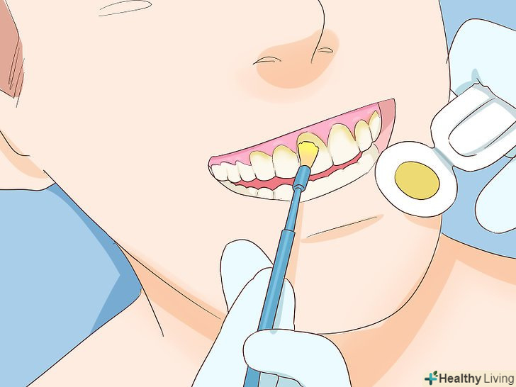 Нанесіть на зуби захисне покриття.за допомогою невеликого пензлика стоматолог завдасть це покриття на ваші зуби. Це займе всього кілька хвилин, але при цьому вбереже зуби від пошкоджень. Особливо добре наносити це покриття на задні зуби (моляри).[10]- Більшість стоматологів не стануть наносити це покриття на зуби, які вже почали руйнуватися від карієсу, так як це лише «запечатає» бактерії всередині зуба. Проконсультуйтеся зі стоматологом про інші варіанти лікування цих зубів.