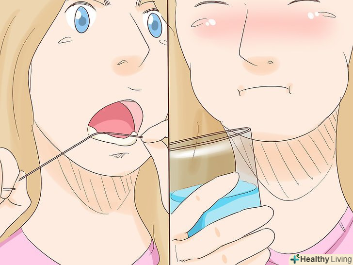 Чистіть зуби зубною ниткою і використовуйте рідину для полоскання рота після кожного чищення зубів.Чистка зубів зубною ниткою видалить приховані частинки їжі і наліт між зубами, а також захистить ясна від гінгівіту, який може зіпсувати зуби. Намагайтеся чистити зуби зубною ниткою хоча б раз в день. Використовуйте рідину для полоскання рота після кожного чищення зубів, щоб позбутися від шкідливих бактерій у роті. [13]- Врахуйте, що більшість рідин для полоскання рота непридатні для дітей, навіть якщо у них псуються зуби.