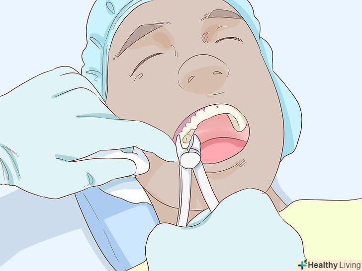 Користуйтеся засобами для полоскання рота згідно з вказівками стоматолога.якщо стоматолог призначив вам засіб для полоскання рота, користуйтеся ним згідно з його вказівками і не припиняйте раніше терміну. Засіб для полоскання рота підготує порожнину рота до операції і дозволить уникнути інфекцій після її проходження. Воно також може знизити ймовірність псування інших зубів.[8]- Як правило, рідини для полоскання рота продаються з ковпачком-дозатором і інструкцією щодо частоти і тривалості використання.