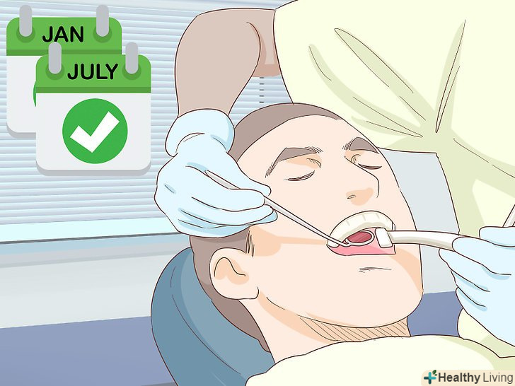 Раз на півроку проходите огляд порожнини рота.під час цих візитів стоматолог перевірить минулі роботи, які були проведені над зубами, і пошукає можливі проблеми. Він може запропонувати курс лікування, для якого вам знадобиться неодноразово відвідувати стоматолога, або призначити ліки для боротьби з інфекціями.[7]- Наприклад, якщо стоматолог запідозрить у вас гінгівіт, то призначить вам спеціальний засіб для полоскання рота.