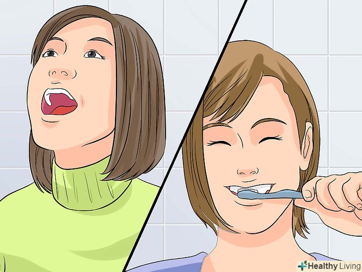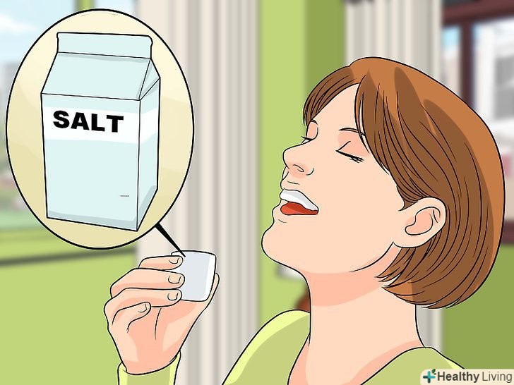 - Обполіскуйте рот сольовим розчином після кожного прийому їжі, оскільки це допоможе видалити залишки їжі і змити бактерії.[12]