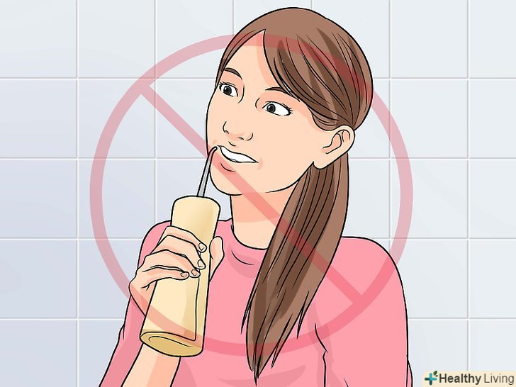 Не пийте через трубочку.перші кілька днів після операції не пийте через трубочку будь-які напої або їжу (наприклад, смузі), так як це може порушити процес загоєння.[14]