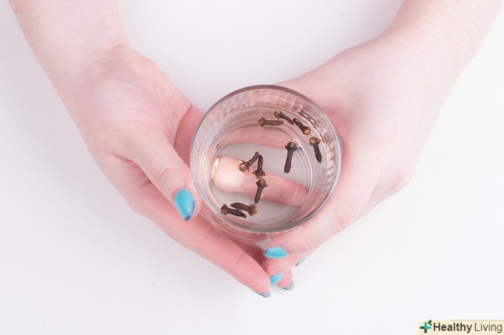Використовуйте свіжі цілісні бутони гвоздики.крім масла в якості знеболюючого засобу підійдуть квіти гвоздики. Візьміть 1-3 цільних бутона гвоздики і прикладіть їх до зуба, що знаходиться поруч з хворим зубом. Зачекайте кілька хвилин, поки гвоздика розм'якшиться, потім легенько прикусіть її, щоб випустити масло. Тримайте масло в роті 20 хв.[11]- Після 20 хв прополощіть рот теплою солоною водою.
