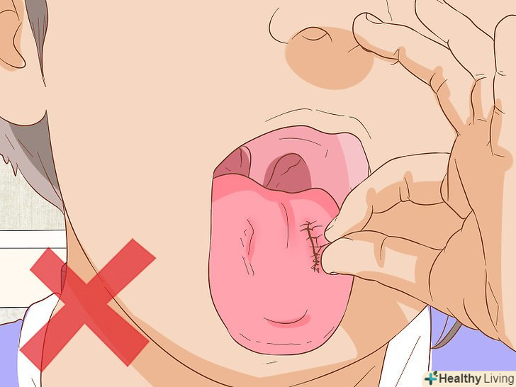 Не торкайтеся до швів на мові.хоча ви можете відчувати сильний дискомфорт, не тягніть і не намагайтеся прибрати шви. Це може послабити їх або і зовсім привести до їх випадання.[18]