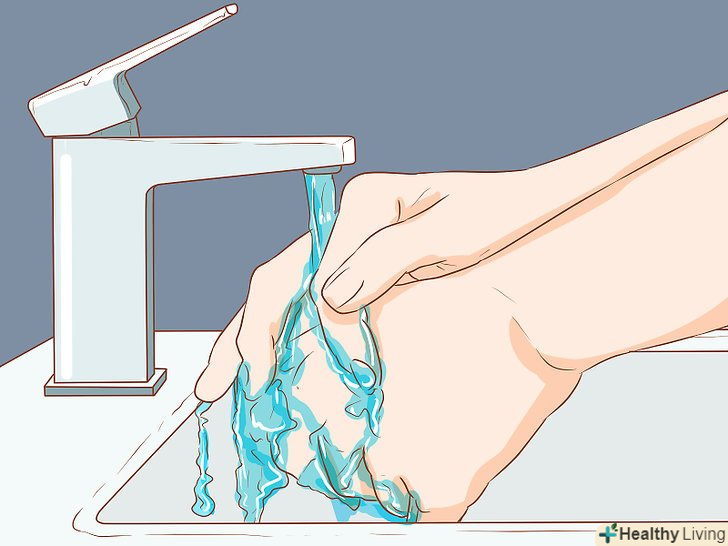 Помийте руки.перш ніж торкатися до рани, ви повинні продезінфікувати руки, щоб зменшити ризик зараження інфекцією. Ви також можете надіти медичні рукавички, коли будете надавати допомогу вашому близькому, щоб не занести інфекцію.[3]