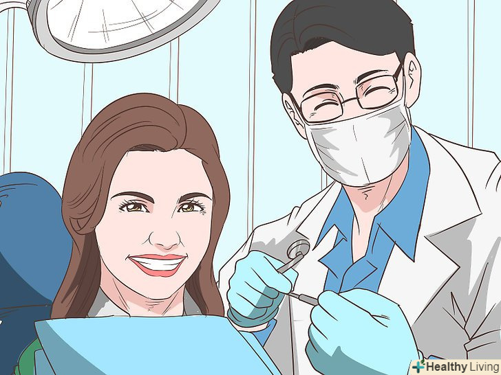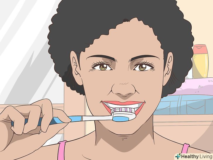 Регулярно чистіть зуби і використовуйте зубну нитку.для ідеальної посмішки і впевненості в собі важлива правильна гігієна порожнини рота. Чистіть зуби кожен день. Використовуйте антибактеріальну рідину для полоскання рота. Відвідуйте стоматолога не рідше одного разу на рік, щоб стежити за здоров'ям зубів.[20]- Не забувайте про ясна. Здоров'я ясен також важливо для здорової посмішки. Використовуйте зубну нитку хоча б раз на день.