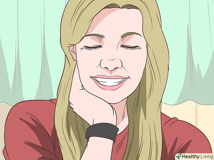 Щасливі думки.ще один спосіб поліпшити настрій і здатність посміхатися полягає в тому, щоб згадувати найбільш щасливі моменти свого життя або улюблених людей. Вибирайте спогади або людей, думки про яких дарують тепле почуття радості. Це може бути спогад з дитинства, мама, Бабуся з дідусем або ваша друга половинка. Не сумнівайтеся, це дійсно працює![16]- Уявіть людину або подію. При розмові уявіть на місці співрозмовника того, хто здатний викликати вашу найщирішу посмішку.
