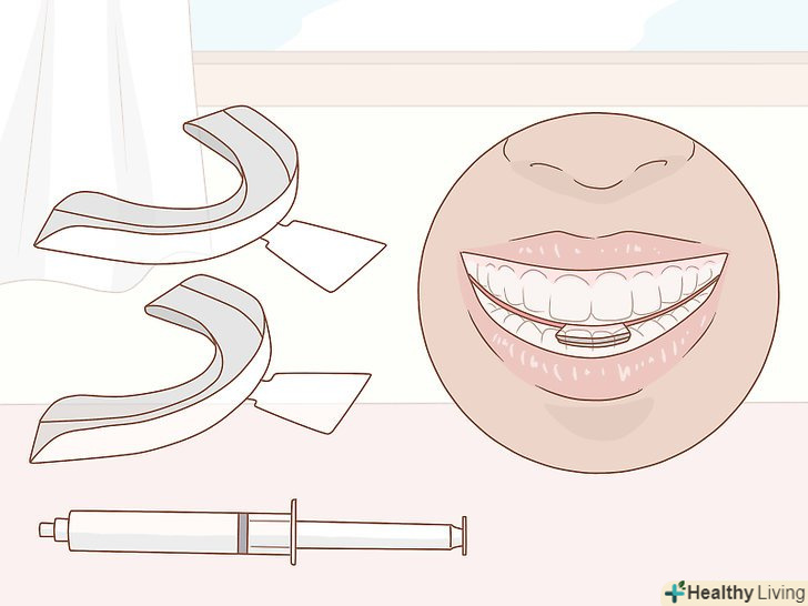 Користуйтеся безрецептурними засобами для відбілювання зубів.відбілююча зубна паста найпростіша у використанні, оскільки нею можна чистити зуби так само, як і звичайною. Однак існує великий вибір інших засобів для відбілювання зубів. Як правило, вони продаються у вигляді гелів, смужок або відбілюючих розчинів, які наносяться за допомогою стоматологічного лотка.[15] ці кошти дуже ефективно справляються з плямами від куріння. [16]- Не користуйтеся гелями і відбілювачами занадто часто. Смужками можна користуватися на регулярній основі.