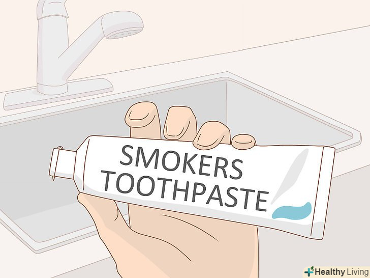 Подумайте над тим, щоб почати користуватися спеціальною зубною пастою для курців.на полицях магазинів можна знайти спеціальні зубні пасти для курців. У них присутні більш абразивні компоненти, на зразок харчової соди або оксиду алюмінію, ніж в звичайних зубних пастах. Вони допоможуть видалити смолу і нікотин, які проникли в емаль.[6][7]- Так як ці зубні пасти більш абразивні, вони швидше зітруть емаль. Якщо вас це турбує, користуйтеся особливою зубною пастою лише зрідка, а решту часу чистите зуби звичайною зубною пастою.