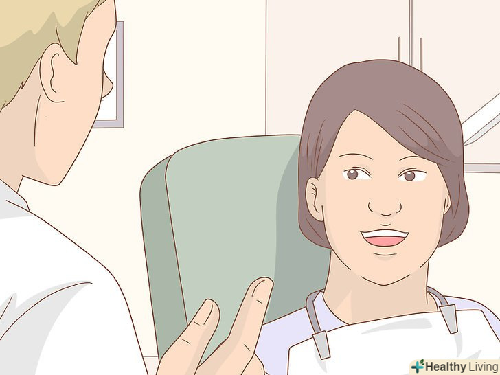 Регулярно відвідуйте стоматолога.якщо ви курець, то вам варто частіше відвідувати стоматолога, ніж це зазвичай прийнято. Дізнайтеся у стоматолога про те, як часто, на його/її думку, вам варто до нього/неї ходити.[11]- Під час ваших візитів стоматолог проведе ретельне чищення зубів, що допоможе прибрати легкі плями і зменшить прояв найсильніших.