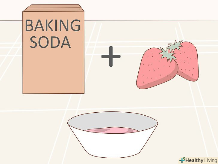 Спробуйте відбілити зуби продуктами, які можна знайти вдома.існує кілька натуральних засобів, які нібито здатні відбілити зуби. До них відноситься: бананова шкірка, полуниця і яблучний оцет. Рот також можна полоскати кокосовим маслом.[17]- Щоб використовувати полуницю, роздушіть кілька ягід і додайте до них соду. Використовуйте цю суміш як зубну пасту. Можливо, це засіб ефективно через яблучної кислоти, яка присутня в полуниці.