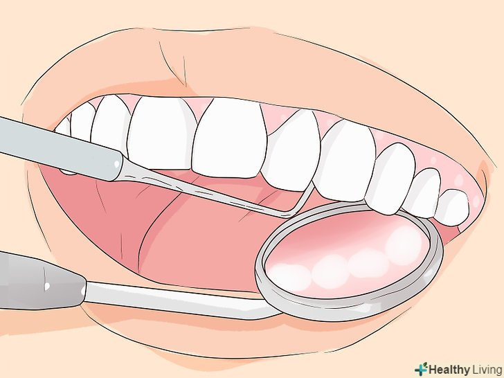 Пройдіть огляд зубів.спочатку стоматолог загляне вам в рот і перевірить зуби. Він перегляне кожен зуб на наявність нальоту і зубного каменю.[11]- Стоматолог також перевірить присутність інших проблем, на зразок запалення ясен.