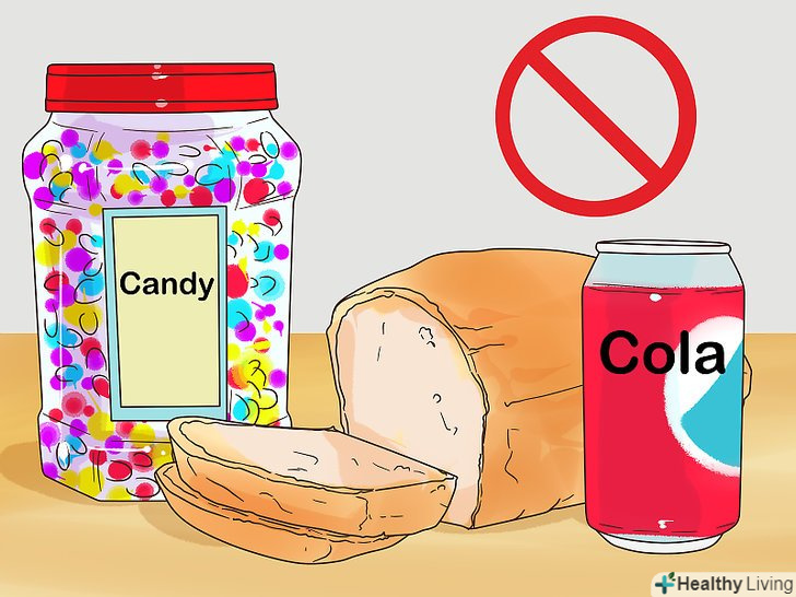 Не їжте продукти, які шкідливі для зубів.щоб запобігти скупченню нальоту, відмовтеся від продуктів, які до нього призводять. До них відносяться солодкі і борошняні вироби, такі як цукерки, газована вода і хліб.[5]- Якщо ви не хочете повністю відмовлятися від цих продуктів, тоді чистите зуби відразу після їх прийому. Якщо ж у вас під рукою немає зубної щітки і зубної пасти, випийте води, щоб змити їжу з зубів.