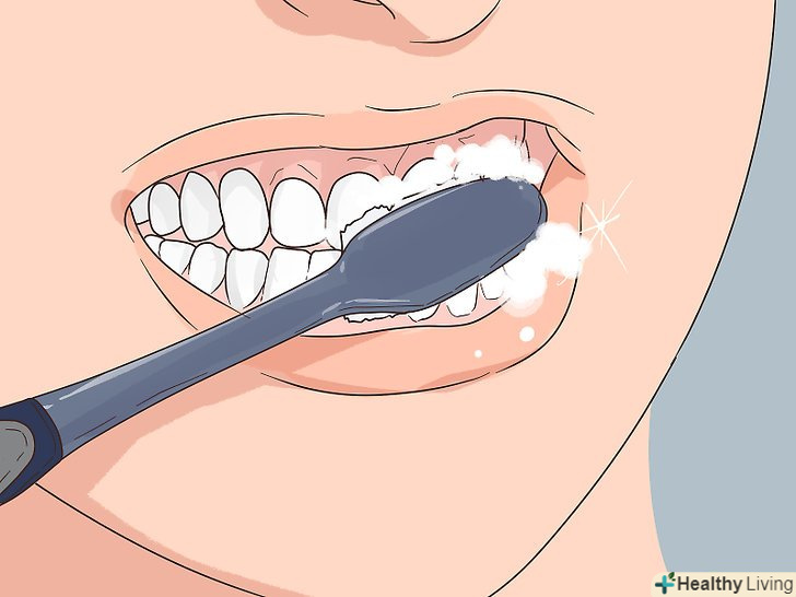 Ретельно чистіть всі зуби.виділяйте час на чистку зубів і чистіть кожен з них. На те, щоб почистити всі зуби, потрібно приблизно 2 хвилини.[9]- Чистіть зуби з усіх боків. Регулярно приділяйте час чищенню внутрішньої, зовнішньої і верхньої поверхні зубів.