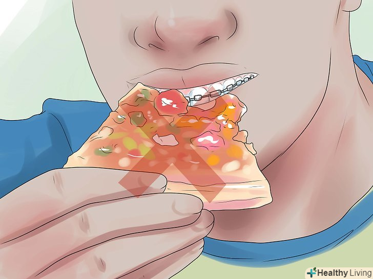 Не вживайте тверді або хрусткі продукти.якщо ви носите брекети, то деякі жорсткі продукти кусати небезпечно, так як дріт може зігнутися, лопнути або зламатися.- Уникайте твердих цукерок і печива, сухариків, кірочок піци, горіхів, насіння, льоду і тому подібного.