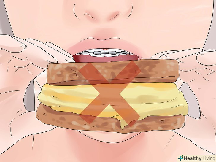 Уникайте в'язкої їжі.особливо якщо у вас піднебінний Розширювач, за який може зачепитися їжа. Деякі продукти стають в'язкими, коли розтануть, наприклад сир моцарелла. До них теж потрібно ставитися з обережністю.[8]