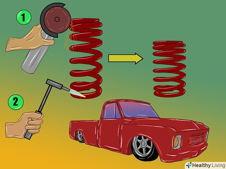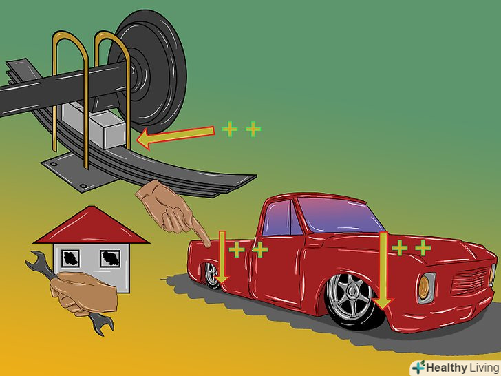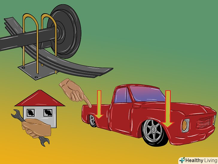 Зніміть ресори задньої підвіски вашого автомобіля.віднесіть їх в автомайстерню і попросіть вирівняти їх. Також можна використовувати ресори з негативним прогином.- Інший спосіб занизити автомобіль - це виготовити кріплення фіксує вісь зверху ресори. Таке кріплення можна зробити в домашній майстерні за допомогою підручного інструменту.