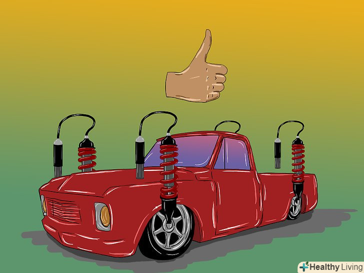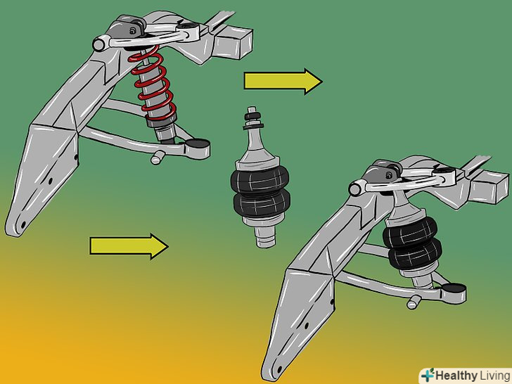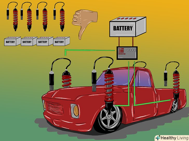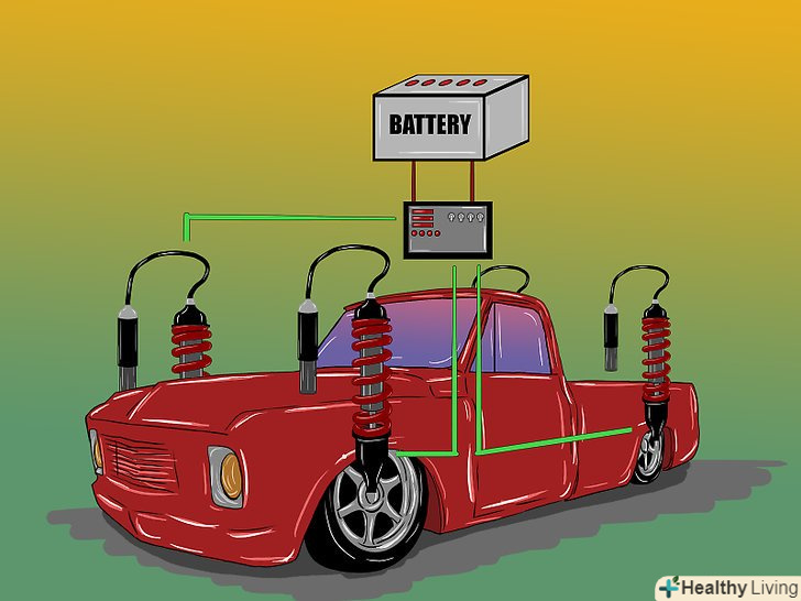 Встановіть гідравлічну підвіску.гідравлічні амортизатори можна поставити як на як на всі колеса, так і на одну вісь або сторону.- Гідравлічна підвіска передбачає установку помп, батарей, які будуть живити помпи і системи управління.