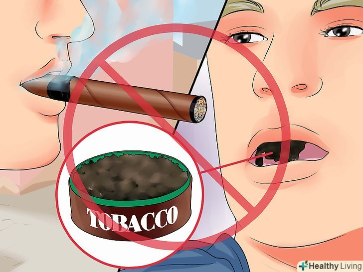 Не паліть і не жуйте тютюн.куріння саме по собі не викликає утворення зубного нальоту. Однак воно посилює вплив нальоту, який у вас вже є.[27] дослідження показують, що куріння збільшує ризик втрати зубів[28] і виникнення пародонтозу.[29] жувальний тютюн діє подібним чином, оскільки містить нікотин. Крім того, він викликає жовтизну зубів.