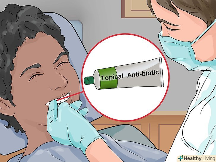 Отримайте додаткове лікування, якщо необхідно.якщо на ваших зубах у великих кількостях присутній не тільки наліт, але і камені, що в свою чергу викликає розвиток пародонтозу, стоматолог може призначити вам антибіотики місцевої дії або порекомендувати інші процедури, наприклад, фотодинамічну терапію, які спрямовані на знищення бактерій, що викликають наліт.[34]
