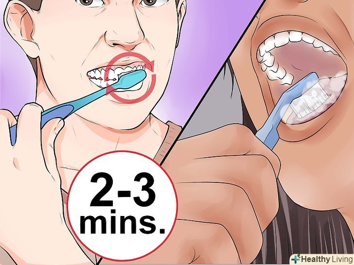 Чистіть зуби правильно.якщо ви недостатньо добре чистите зуби, на них може залишатися зубний наліт. Щоб правильно чистити зуби, дотримуйтесь наведених нижче рекомендацій:[4][5]- Чистіть зуби 2-3 хвилини.
