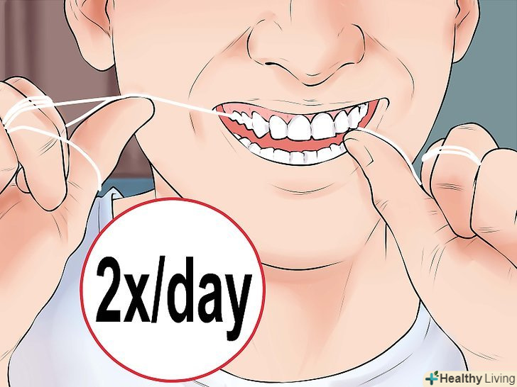 Користуйтеся зубною ниткою два рази в день.зубний наліт утворюється і між зубами, і біля ясен. У цих місцях його важко прибрати зубною щіткою. Важливо користуватися зубною ниткою кожен день, щоб ніде не залишався зубний наліт, який згодом перетворюється в зубний камінь і призводить до утворення карієсу. Ви можете вибрати будь-який тип зубної нитки: вощену, невощену, з просоченням або без неї, будь-якої довжини і форми.- Стоматологи рекомендують використовувати зубну нитку перед чищенням зубів.[9] однак якщо ви використовуєте зубну нитку, це вже добре, незалежно від того, коли ви це робите.