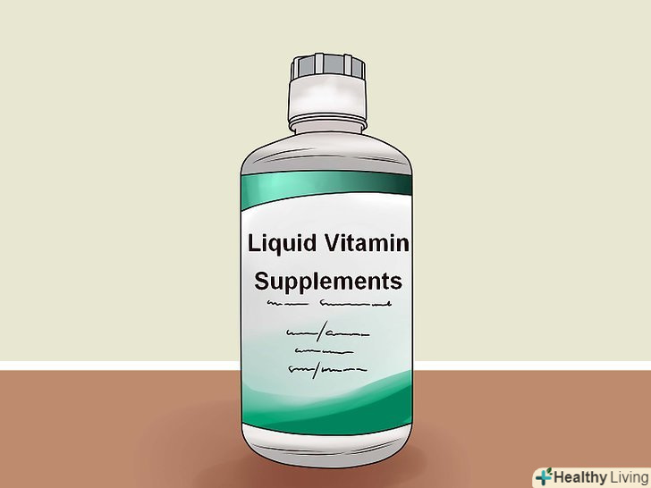 Придбайте вітамінні харчові добавки в рідкому вигляді.при тривалому дотриманні обмеженої або рідкої дієти вам можуть знадобитися мультивітамінні добавки. З їх допомогою ви зможете забезпечити свій організм необхідними вітамінами.[6]- Виберіть рідку вітамінну добавку, яка містить повний комплекс вітамінів і мікроелементів.
