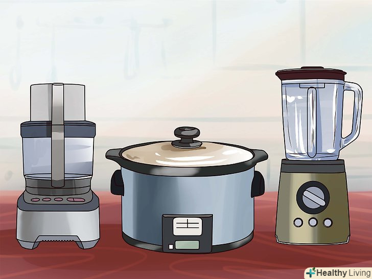 Придбайте відповідний кухонний інвентар.з відповідним кухонним обладнанням вам легше буде дотримуватися намічену дієту. Крім того, це розширить вибір можливих продуктів і урізноманітнює ваше меню.- Прекрасним інструментом є кухонний комбайн-з його допомогою ви зможете подрібнювати щільну і тверду їжу і перетворювати її в пюре. Він дозволить вам готувати пюре з різних фруктів і овочів і дрібно рубати білкову їжу (морепродукти, куряче або червоне м'ясо). Кухонний комбайн стане в нагоді в тому випадку, якщо вам можна їсти не тільки пюре, але і дрібно подрібнені продукти.