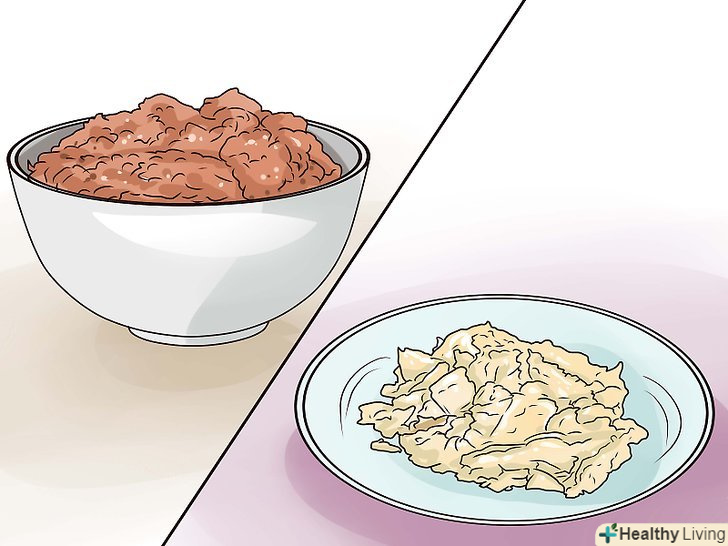 Включіть в свій раціон м'яку білкову їжу. Білки є необхідною складовою вашого раціону. Якщо не вживати білок всього лише протягом 1-2 днів, це може викликати втрату ваги і м'язової маси.[2] якщо ви дотримуєтеся м'яку або рідку дієту, то слід подбати про те, щоб ваш раціон містив достатньо білка.- Якщо вам можна їсти лише пюреобразную і рідку їжу, включіть в свій раціон наступні білкові продукти: квасолевий суп-пюре (наприклад, суп з чорної квасолі), перетертий тофу в супах, хумус, консервовані супи-пюре і тушковані рідкі страви.[3]