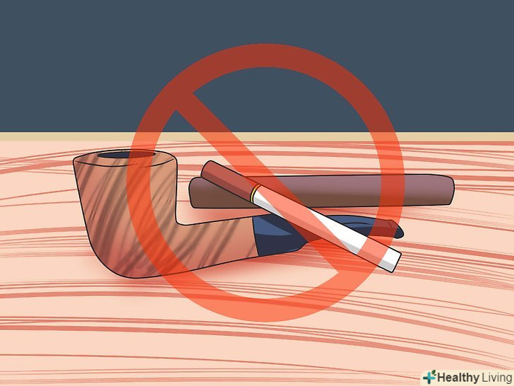 Не паліть.виключіть сигарети, трубки, сигари, жувальний тютюн і тютюн. Все це шкідливо для зубів. Вважається, що жувальний тютюн краще, ніж куріння, однак це не так. Жувальний тютюн містить як мінімум 28 сполук, які призводять до розвитку раку порожнини рота і є більш сильними, ніж нікотин.[2] єдине, що ви можете зробити - виключити ці продукти.