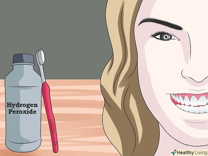 Відбілювання зубів перекисом водню.перекис водню може бути використана для тривалого застосування. Спробуйте полоскати рот, але не ковтати!- Зробіть пасту з перекису водню і харчової соди. Втирайте в зуби як зубну пасту, залиште на одну-дві хвилини і змийте. Ви помітите результат вже після першого використання.