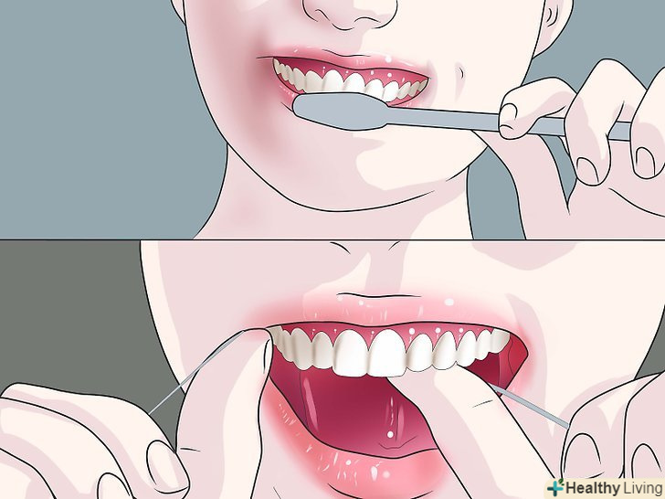 Чистіть зуби і використовуйте зубну нитку.кращий шлях підтримки здоров'я зубів і запобігання потемніння емалі-це чистити зуби кожен день і користуватися зубною ниткою. Чистіть зуби перед сном і після їжі. Їжа може залишати плями на емалі зубів, а чищення зубів видаляє залишки їжі.- Чистіть зуби протягом двох хвилин. Очищайте мову і ясна теж!