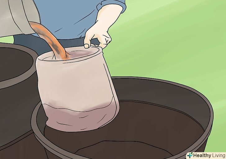Видаліть залишки їжі. фільтрація очистить використане масло від залишків їжі та інших частинок. Очищення обов'язкове, оскільки в шматочках великого розміру міститься вода, яка може вплинути на реакцію вашого біодизеля.- Зливаючи залишки масла, використовуйте фільтр. Щоб затримати великі частинки, досить грубого фільтра, виготовленого з решітки проти комарів або сита для фарби. Більш дрібні частинки не зможуть серйозно вплинути на реакцію біодизеля.