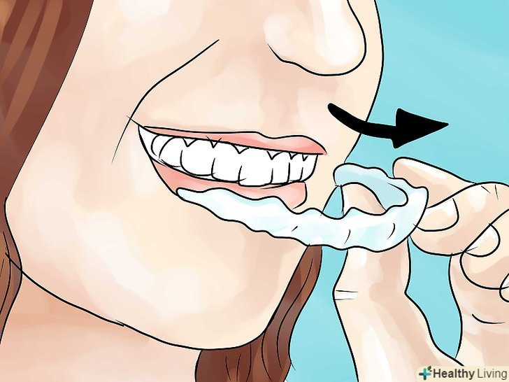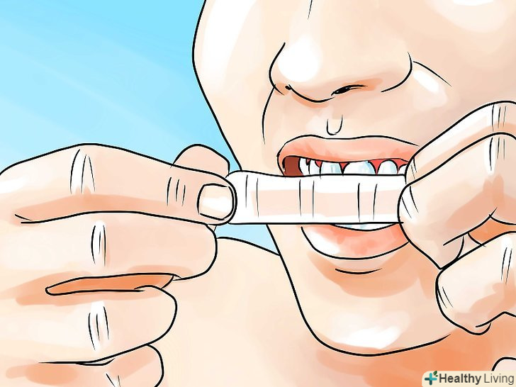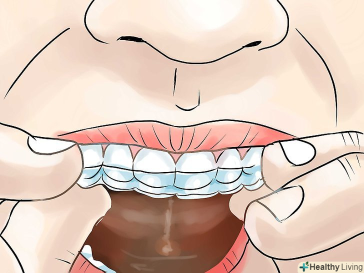 Помістіть смужки на зуби.дотримуйтесь інструкцій на упаковці, але також пам'ятайте, що будь-які смужки можна носити від 30 хвилин двічі на день. Деякі смужки розчиняються при контакті зі слиною і зникають. Інші потрібно зняти і утилізувати.
