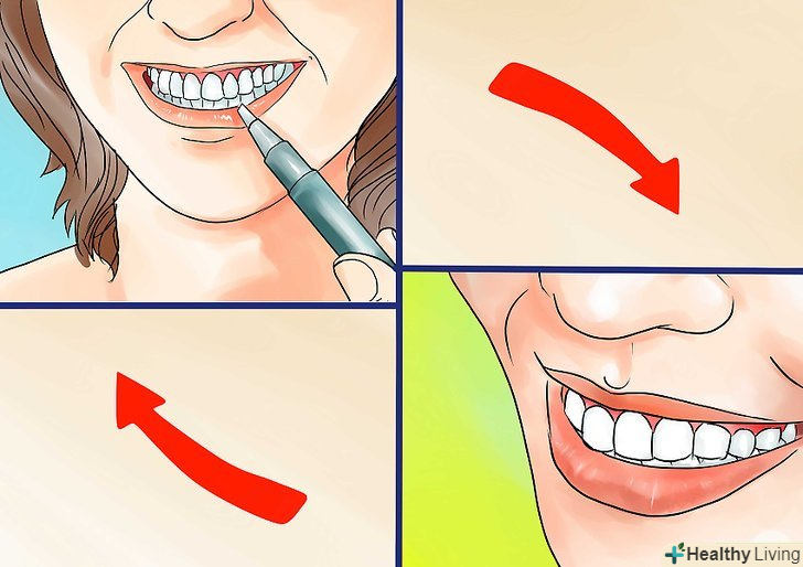 Повторюйте процедуру не більше трьох разів на день.різниця буде помітна через 2-4 тижні. Хоч такий олівець не дуже добре відбілює між зубами, він знищує бактерії в порожнині рота і освіжає ваше дихання.[5]