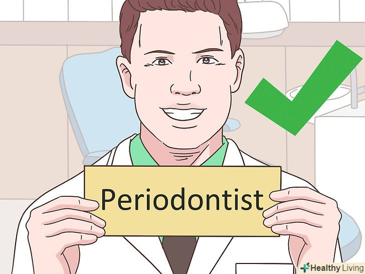 Проконсультуйтеся з пародонтологом.якщо у вас є проблеми по частині стоматології, які не може вирішити стоматолог-терапевт, швидше за все, вас направлять до лікаря-пародонтолога. Лікарі цього профілю спеціалізуються на профілактиці та лікуванні захворювань пародонту, тому вони точно допоможуть вам вирішити проблему з рецесією ясен.[2]