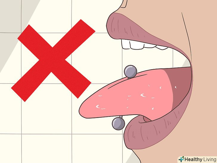 Не робіть оральні пірсинги.металева біжутерія в порожнині рота може не тільки викликати проблеми з зубами, але і негативно вплинути на стан ясен. Прикраси на мові і губі (- ах) часто стикаються з лінією ясен, травмуючи їх і викликаючи рецесію.[10]- Якщо ви все ж вирішили зробити пірсинг у роті, переконайтеся в тому, що в Пірсинг-салоні дотримуються всі принципи асептики і антисептики.