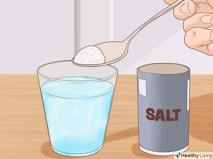 Попестити рот сольовим розчином.це допоможе знизити набряк і сухість, а також виявити інфекцію, яка може ховатися в абсцесі. Візьміть півсклянки води кімнатної температури і додайте пів чайної ложки звичайної столової солі. Розмішайте до повного розчинення солі. Нічого страшного, якщо на дні залишиться трохи солі. Прополощіть рот як зазвичай, але при цьому приділіть особливу увагу зараженому ділянці. Не ковтайте солону воду.[4]- Попестити рот сольовим розчином 1-2 рази на день протягом тижня, щоб прискорити загоєння абсцесу. Це знизить ймовірність його повторної появи. Разом з цим підтримуйте гігієну порожнини рота.