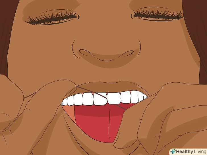 ЩодняЧистіть зуби зубною ниткою.чищення зубів зубною ниткою-це найкращий спосіб зменшити кількість бактерій і зубного нальоту в роті. Оскільки здоров'я порожнини рота дуже важливо для запобігання ясенних абсцесів, зуби необхідно чистити зубною ниткою кожен день. Це особливо важливо, якщо ви страждаєте від хронічних або рецидивуючих ясенних абсцесів.[8]- Більшість стоматологів рекомендує чистити зуби ниткою двічі на день.