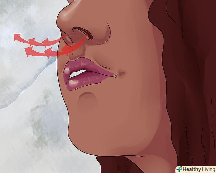 Якомога більше дихайте через ніс.якщо вам легше дихати через рот, то доведеться зробити над собою зусилля. Якщо у вас закладений ніс, можливо, виникнуть проблеми. Тоді слід зволожити носові проходи за допомогою спрею для носа, а також потрібно вилікувати закладеність. [7]