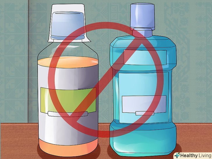 Уникайте регулярного полоскання рота спеціальними розчинами для полоскання, тому що вони часто містять спирт або перекис, які викликають відчуття сухості в роті.[4]тому використовуйте замість них рідини для полоскання рота, які містять Ксиліт - його часто додають в продукти, щоб звести до мінімуму відчуття сухості в роті.[5]
