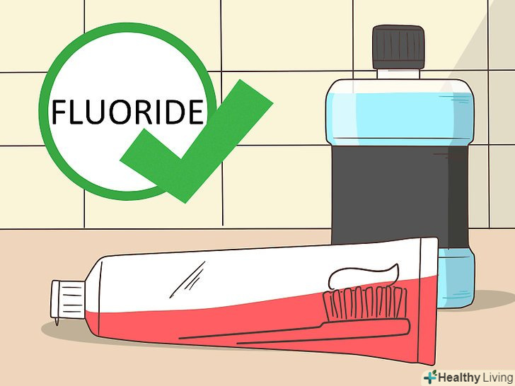Використовуйте засоби, які містять фториди, для мінералізації зубів.різні марки і види зубних паст і ополіскувачів для рота містять різну кількість фторидів. Вважається, що фториди допомагають блокувати сигнали болю від нервів ротової порожнини, завдяки чому вони зменшують чутливість зубів. Якщо ви використовували засіб з фторидами, то утримайтеся від їжі хоча б на 30 хвилин, щоб отримати максимальний ефект.[11]- Ось кілька засобів для ополіскування рота, які містять фториди: Listerine Fluoride Defense, Fluoride Listerine, Colgate Neutrafluor і Colgate Fluorigard.