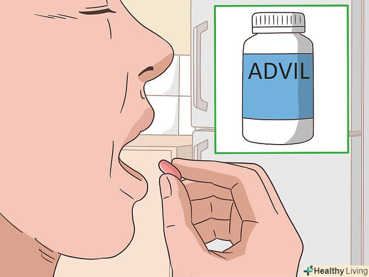 Перед процедурою відбілювання прийміть знеболюючий засіб.приблизно за годину до відбілювання зубів прийміть рекомендовану дозу протизапального засобу( НПЗЗ), часто рекомендують ібупрофен або напроксен. Якщо прийняти НПЗЗ заздалегідь, то засіб подіє якраз перед відбілюванням. При необхідності, якщо у вас з'являться хворобливі відчуття після відбілювання, ви можете прийняти НПЗЗ ще раз.[4]- Якщо ви не впевнені в тому, яке НПЗЗ вам слід прийняти, запитайте у стоматолога.
