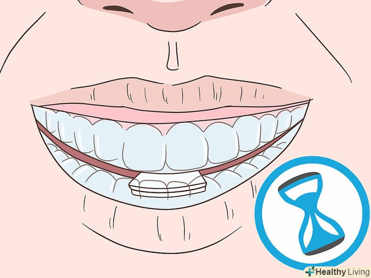Залиште відбілюючий засіб на вказаний час.не слід тримати засіб довше покладеного, від цього зуби не стануть яскравіше або біліше, але при цьому ви напевно зіпсуєте зубну емаль, і у вас виникнуть проблеми з чутливістю зубів і карієсом.[7]- Зазвичай час, протягом якого слід тримати засіб, відрізняється для різних продуктів різних виробників, але в цілому воно залежить від відсотка вмісту перекису водню.