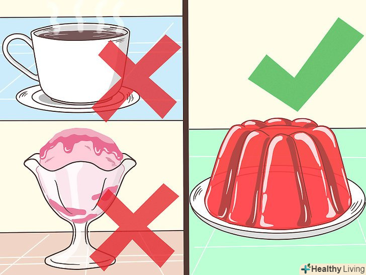 Не пийте гарячі і холодні напої.після процедури відбілювання зуби стають більш пористими і дуже чутливими до температури, особливо протягом перших 24-48 годин. Тому краще не пити занадто гарячі або занадто холодні напої, а найкраще вживати напої і продукти кімнатної температури. Наприклад, замість того, щоб з'їсти морозиво, з'їжте желе кімнатної температури.- Навіть якщо після процедури ви не відчуєте біль, краще не піддавати зуби впливу низьких і високих температур.
