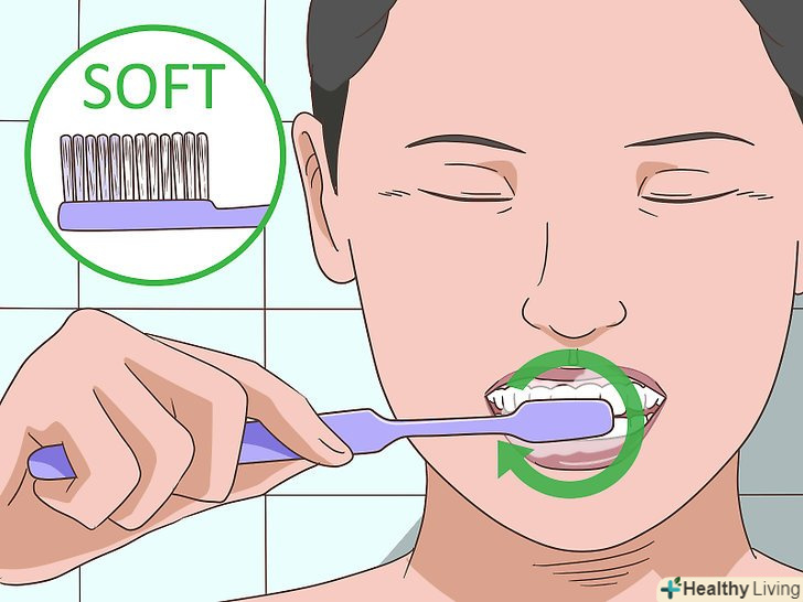 Чистіть зуби зубною щіткою з м'якою щетиною.лікарі завжди рекомендують використовувати зубну щітку з м'якою щетиною як до, так і після відбілювання. Чистіть зуби акуратно круговими рухами. М'які щетинки акуратно очистять зуби і не зіпсують поверхню зубів. Після відбілювання, перш ніж чистити зуби, слід почекати від 30 хвилин до години. Після відбілювання ви можете тільки прополоскати рот водою, якщо захочете.[9]- Для полоскання і чищення зубів використовуйте теплу воду, щоб мінімізувати неприємні відчуття.