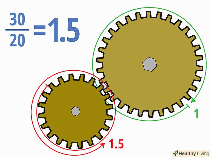 Розділіть кількість зубів веденої шестерні на кількість зубів провідної шестерні, щоб обчислити передавальне відношення.залежно від умов завдання ви можете записати відповідь у вигляді десяткового дробу, звичайного дробу або у вигляді відношення (х:у).- У нашому прикладі: 30/20 = 1,5. Ви також можете записати відповідь у вигляді 3/2 або 1,5:1.
